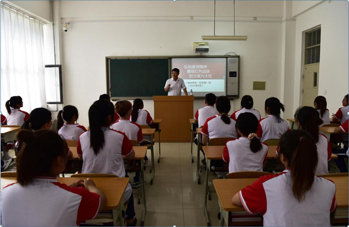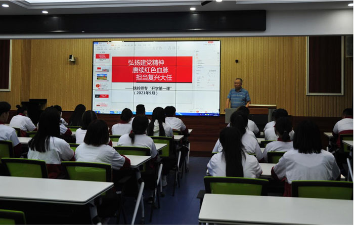 新学期开学伊始,学校领导走进思政课堂,以学习贯彻落实习近平总书记“七一”重要讲话精神为契机,教育引导广大学生坚定听党话、感党恩、跟党走,以不负时代、不负韶华的奋进姿态开启2021年秋季学期新征程。