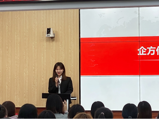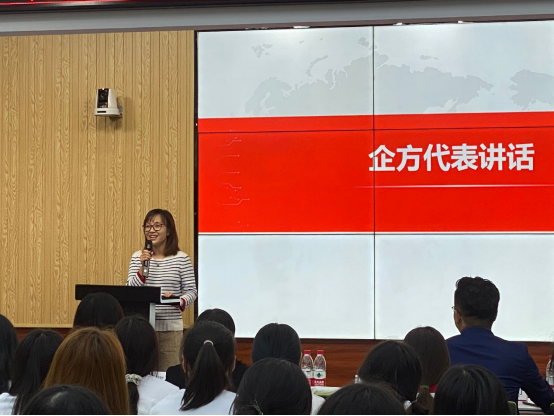 2018级许蕊同学作为实习生代表发言。她用自己的经历来鼓励同学一定要学习好企业数智化转型中所需的知识、技能,养成良好的学习习惯,用自己的实际行动向企业和学校交出了一份满意的答卷!