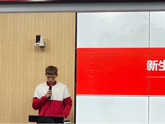 2020级张天赐同学代表新生发言。在发言中首先讲到了作为共建班的一员而感到骄傲和自豪,同时看到学校和企业为同学们的付出,也倍感自己责任重大,决心努力学习,不负韶华,做有理想,有追求,有担当的大学生。
