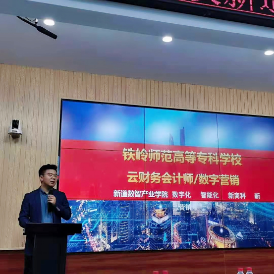 从北京远道而来的新道科技教育服务总监崔永帅就校企共建的人才培养方案和新道完善的服务体系进行了精彩的解读。并带来了先进的人才培养的理念,即以养成教育为理念,逐步培养学生理性思维,敏感的职业判断力以及创新思维能力。要在专业教学中嵌入创新创业课程,挖掘学生的创新创业潜能,培养具有创业精神的复合型应用型高素质人才。