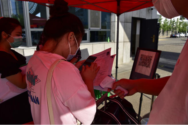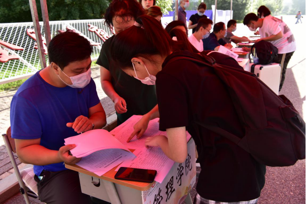 返校学生在工作人员的引导下主动出示辽事通健康码和返校承诺书后,配合体温检测,并到本学院报到地点核实相关情况。报到地点旁设置医疗救护区和临时隔离区,确保有发热或疑似症状的学生能及时运送至定点医院发热门诊。各学院辅导员相关工作人员坚守工作岗位,细致热情为返校复学学生做好服务。
