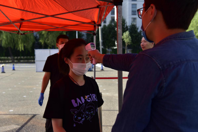 学校对食堂也加强了管理,不仅要求配戴口罩,间隔1米排队进入食堂,还在食堂正门外增设了室外洗手台,在所有食堂入口安排人员测量体温。学生只有体温正常,双手进行清洗消毒后,才可进入。